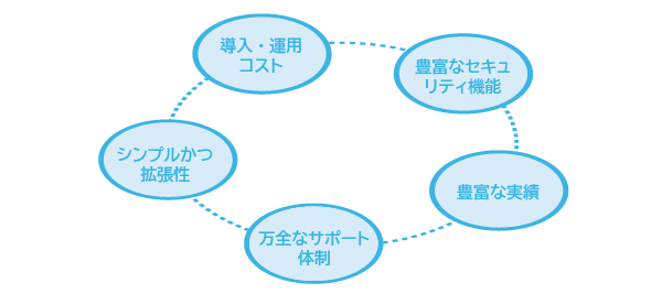 その中でもお客様のニーズやコストに見合っており、拡張性のある製品を選択すべきです。高額な製品を導入しても運用が困難であったり、サポート体制がないと本末転倒です。以下の5つの視点で選定されるとよいでしょう。