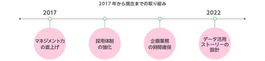 現在、力を入れて取り組んでいるのは人事データの活用です。具体的には、データを貯めて見る前の工程として「データ活用ストーリーの設計」に力を入れています。