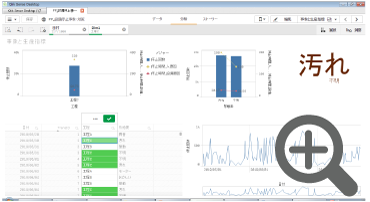 Qlik Sense は、会議の場で必要な生産指標を工程・時間・製品の軸ですぐに確認できるツールです。また、事象説明文を単語に分解したデータを読み込み、定量評価する事が可能です。さらに、その事象への対処方法も「連想技術」で自動的に表示できます。