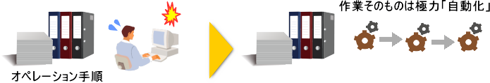 作業プロセスを手順化したり、マニュアル化や標準化を行ったとしても、人が作業を行う限りオペレーションミスが大幅に削減されるわけではありません。オペレーションミスを削減するためには「作業はできるだけ機械化」し、「人は判断するだけ」という仕組みが必要です。